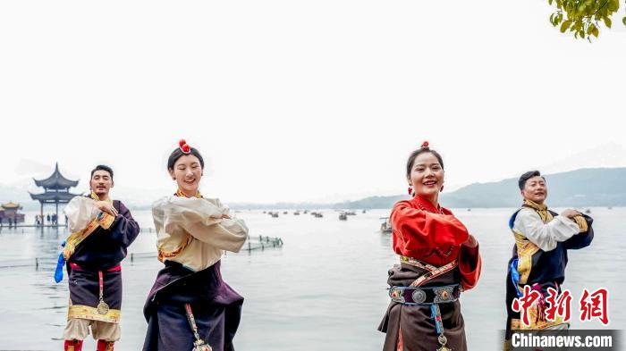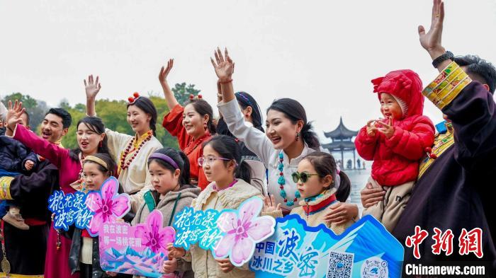 活動當(dāng)天,身著彩云紋藏裝的波密兒女踏歌而來,沿著斷橋、雷峰塔等西湖文化地標(biāo),開啟流動的藝術(shù)巡演。藏式廣袖輕揚間掠過湖光,自發(fā)加入的游客與藏族演員即興共舞,在千年勝景中勾勒出民族交往交流交融的動人圖景?;顒蝇F(xiàn)場,熱情的藏族姑娘、藏族小伙為參與互動的游客送上“桃花氣球”和文創(chuàng)禮品,將高原春日的印記留在江南水岸。