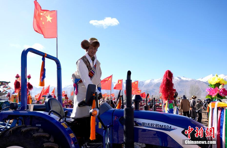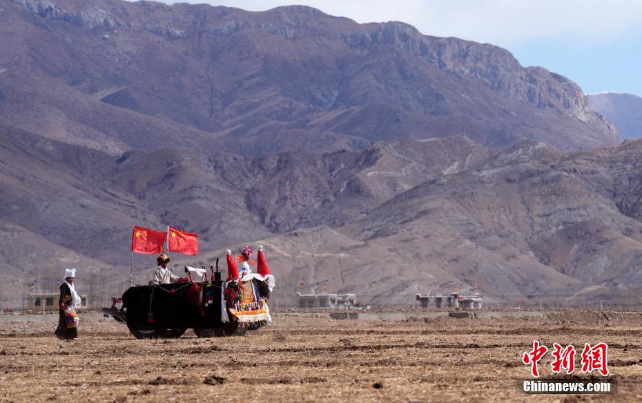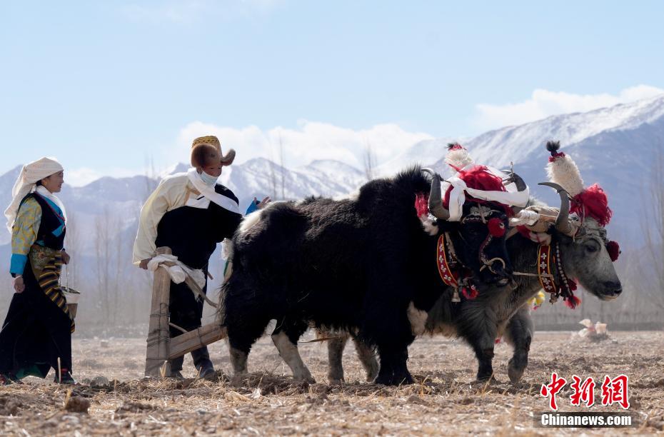 3月16日,是西藏農(nóng)區(qū)開耕的日子。村民身著節(jié)日盛裝,相聚在田間。傳統(tǒng)的“二牛抬杠”開啟“第一犁”后,拖拉機(jī)緊隨其后,婦女將手中的種子撒下,祈求風(fēng)調(diào)雨順、農(nóng)業(yè)豐收。圖為西藏拉薩市林周縣強嘎鄉(xiāng)春耕儀式現(xiàn)場。中新社記者 李林 攝
