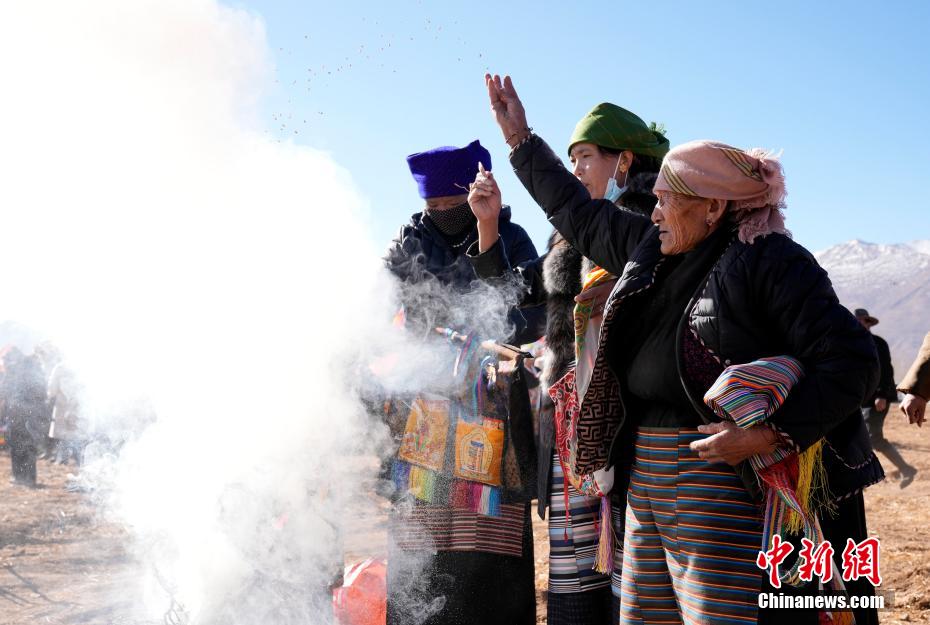 3月16日,是西藏農(nóng)區(qū)開耕的日子。村民身著節(jié)日盛裝,相聚在田間。傳統(tǒng)的“二牛抬杠”開啟“第一犁”后,拖拉機(jī)緊隨其后,婦女將手中的種子撒下,祈求風(fēng)調(diào)雨順、農(nóng)業(yè)豐收。圖為西藏拉薩市林周縣強嘎鄉(xiāng)春耕儀式現(xiàn)場,村民煨桑。中新社記者 李林 攝