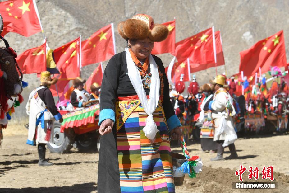 3月16日,西藏拉薩迎來一年一度的傳統(tǒng)春耕儀式。當(dāng)日,拉薩市曲水縣色達(dá)村村民身著節(jié)日盛裝,相聚在田間,載歌載舞,共同迎接春耕第一犁。家家戶戶端著自家的“切瑪”(象征五谷豐登)帶著青稞酒、酥油茶等物品聚在田間,互敬青稞酒,開始撒種,祈求全年風(fēng)調(diào)雨順、五谷豐登。圖為曲水縣色達(dá)村春耕儀式現(xiàn)場。中新社記者 貢嘎來松 攝