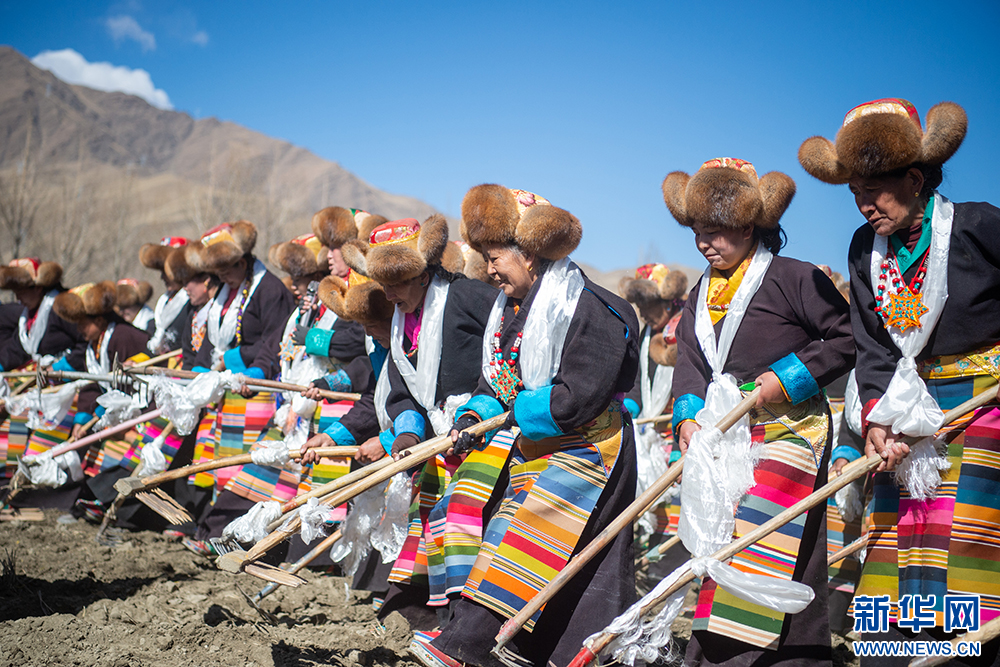 圖為西藏山南市乃東區(qū)門(mén)中崗社區(qū)的春耕儀式現(xiàn)場(chǎng)(3月16日攝)。新華網(wǎng) 旦增努布 攝