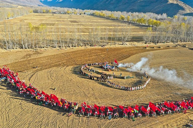 西藏農(nóng)耕文化的發(fā)祥地—雅礱河谷春耕開犁儀式現(xiàn)場(chǎng)。記者 洛桑 通訊員 次仁龍布 攝