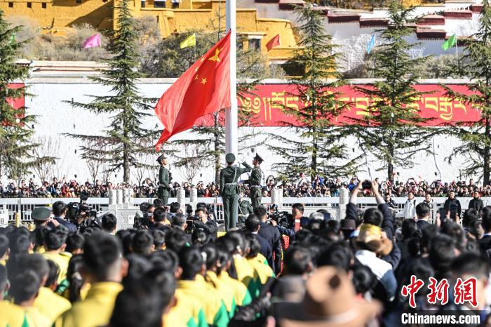 初春的拉薩陽光和煦,布達(dá)拉宮廣場氛圍莊嚴(yán)肅穆。身著節(jié)日盛裝的農(nóng)牧民、披著絳紅色僧衣的僧尼,各族各界代表整齊排列。隊伍中,既有親歷民主改革的老人,也有朝氣蓬勃的"10后"青少年代表,他們共同追憶歷史,展望未來。