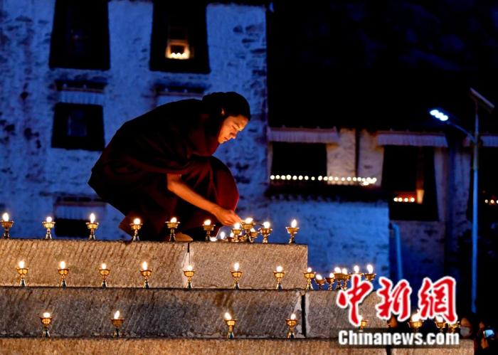 2024年12月24日即藏歷十月二十四日,是藏傳佛教格魯派傳統(tǒng)宗教活動“色拉協(xié)曲”。為紀念色拉寺創(chuàng)建人釋迦也失,西藏拉薩色拉寺內(nèi)點燃酥油燈。 中新社記者 李林 攝