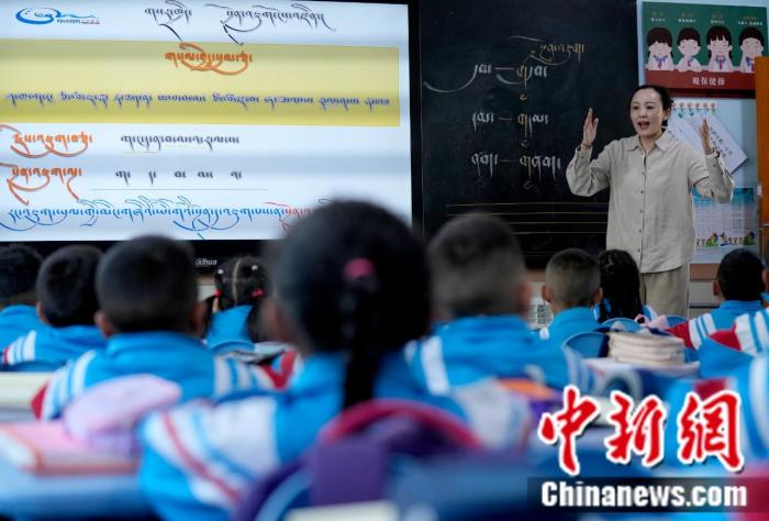 2025年3月10日,拉薩市第一小學藏語文老師桑旦旺姆在課堂上講課。當日,西藏拉薩市春季學期開學,各項教學工作有序開展。中新社記者 李林 攝