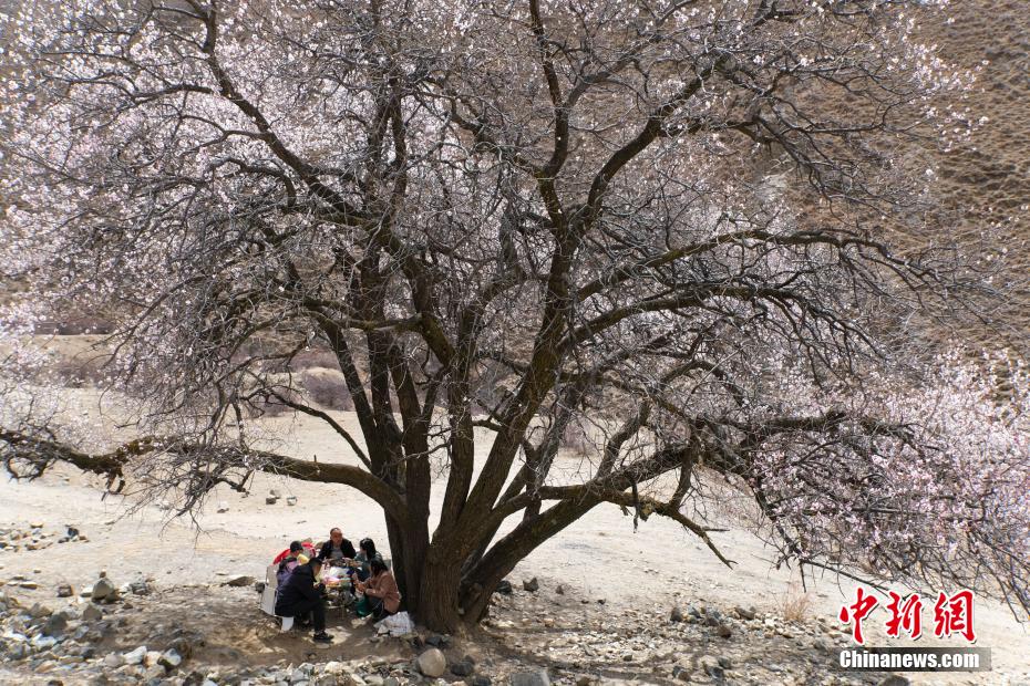 3月下旬,高原已是一片春意。西藏拉薩市區(qū)拉薩河南岸慈覺林的古桃樹進入盛花期,3月30日恰逢周末,不少市民游客前往賞花“打卡”,在桃樹下野餐等,享受高原春日風(fēng)光。圖為3月30日,民眾在拉薩慈覺林桃樹下野餐,享受悠閑時光。江飛波 攝