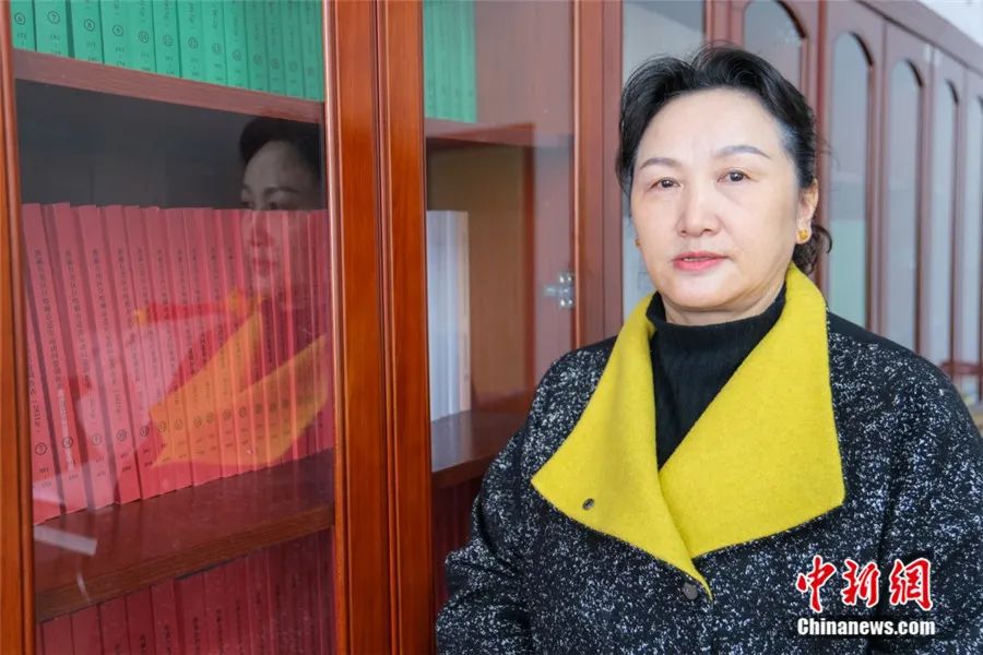 2025年3月20日,巴桑卓瑪在辦公室,其身后是近年在西藏各地調研的資料。中新社記者 江飛波 攝。