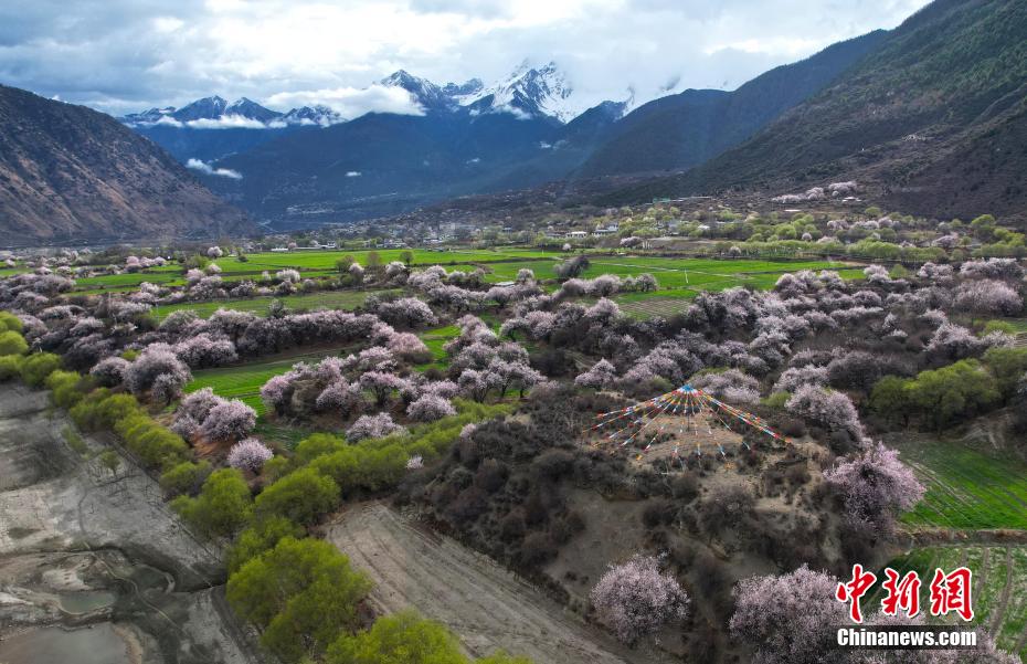 4月4日,西藏林芝市雅魯藏布江沿線桃花風(fēng)光。每年3月下旬,西藏林芝雅魯藏布江沿線桃花綻放,與雪山、鄉(xiāng)村、田野共同組成高原獨(dú)特風(fēng)光,美不勝收。
