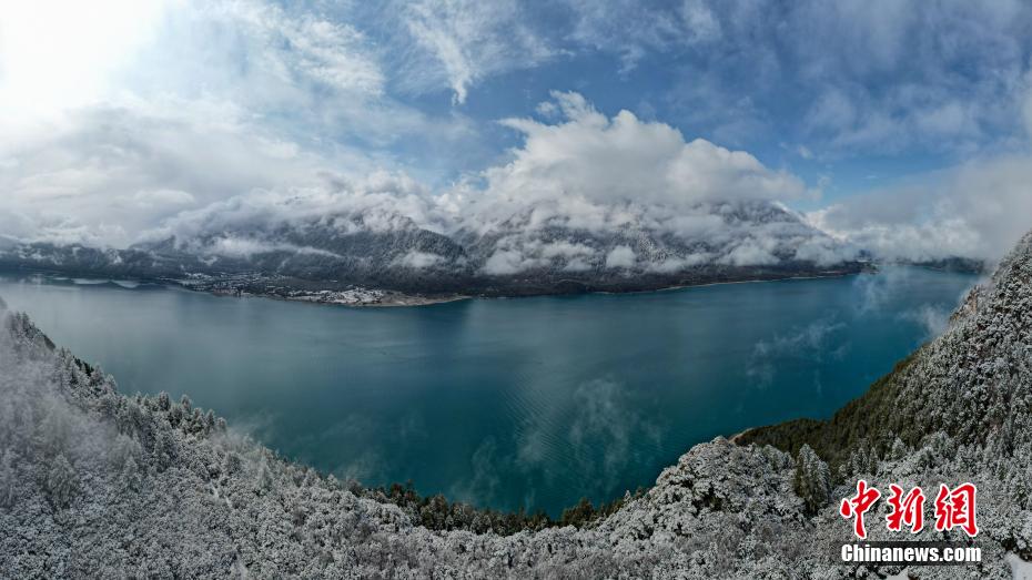 巴松錯位于西藏林芝工布江達縣境內,地處巴河上游的高山峽谷中,是西藏首個自然風景類國家5A級旅游景區(qū)。4月5日,巴松錯迎來一場春雪,雪后四周原始森林猶如蒙上潔白面紗,湖面宛如一面藍寶石鑲嵌其中,風光如畫。圖為4月5日,巴松錯與四周的原始森林和雪山風光。中新社記者 江飛波 攝