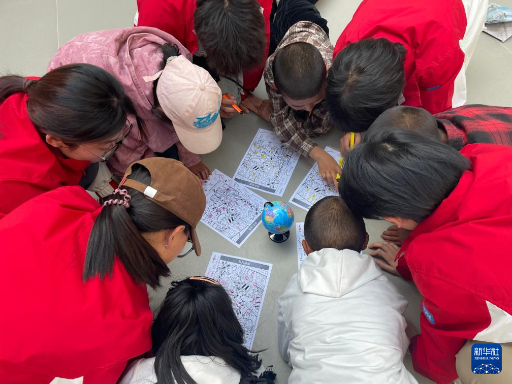 2024年8月31日,張晶晶帶領(lǐng)西部計(jì)劃志愿者到兒童福利院和孩子們做益智活動(dòng)。(受訪者供圖)