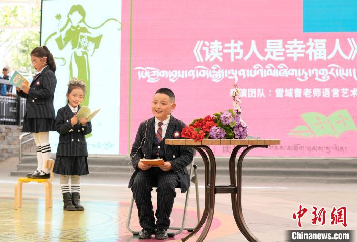 圖為4月19日,第二屆“拉薩春日書(shū)會(huì)”暨拉薩市全民閱讀推廣周系列活動(dòng)開(kāi)幕式上情景朗誦。李林 攝