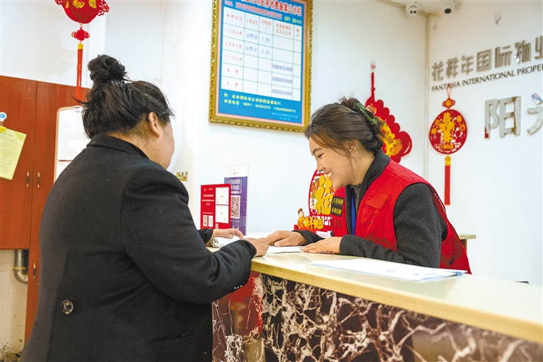 轄區(qū)居民正在向“鄰里驛站”工作人員咨詢問題。