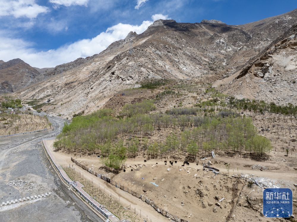 維巴村村民近年來(lái)在山上種植的樹(shù)林(無(wú)人機(jī)照片,4月24日攝)。