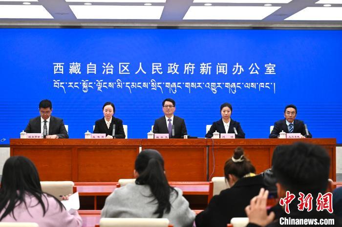 圖為2025年一季度西藏金融運(yùn)行情況新聞發(fā)布會(huì)現(xiàn)場。貢確攝