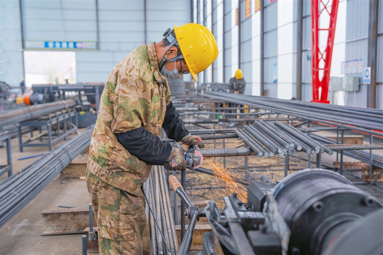 拉薩高新大橋鋼筋加工現(xiàn)場(chǎng)。