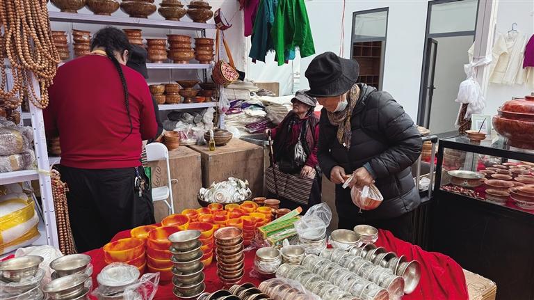 參展商們也在最后一天全力沖刺,來自不同地域、經(jīng)營不同品類商品的商家在展會上均收獲頗豐。來自尼泊爾的新白瑪塔西綜合商店老板拉魯,此次展銷會帶來了木碗、玉碗、銅碗等二十多類特色產(chǎn)品。他笑著表示:“銷量挺不錯的,我們家的產(chǎn)品不僅品類豐富,價格也實(shí)惠。這已經(jīng)是我第八次來拉薩參加展銷會了,每次都能感受到拉薩消費(fèi)者的熱情,也收獲滿滿。”