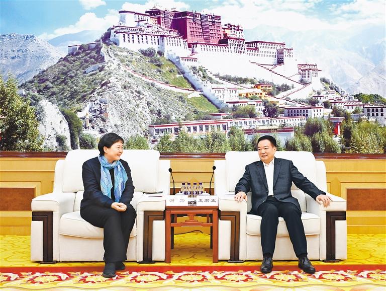 王君正代表自治區(qū)黨委、政府對謝力一行專程赴藏開展慰問演出表示歡迎,對中國文聯(lián)長期以來給予西藏的關(guān)心支持表示感謝。他說,黨的十八大以來,以習近平同志為核心的黨中央高度重視西藏工作,習近平總書記多次作出重要指示批示,為西藏明確了“穩(wěn)定、發(fā)展、生態(tài)、強邊”四件大事,提出了長治久安和高質(zhì)量發(fā)展的戰(zhàn)略目標,為我們做好工作指明了前進方向、提供了根本遵循。十屆自治區(qū)黨委深入貫徹落實習近平總書記關(guān)于西藏工作的重要指示和新時代黨的治藏方略,持之以恒抓好“穩(wěn)定、發(fā)展、生態(tài)、強邊”四件大事落實,努力推動經(jīng)濟社會發(fā)展各項事業(yè)不斷取得新成績,長治久安的基礎(chǔ)更加穩(wěn)固,高質(zhì)量發(fā)展保持良好勢頭,主要經(jīng)濟指標增速位居全國前列,生態(tài)保護扎實推進,邊境地區(qū)建設(shè)不斷加強,民生福祉持續(xù)增進,全社會呈現(xiàn)出一派欣欣向榮的良好發(fā)展景象。