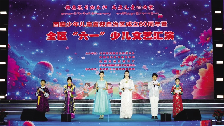 近日,“格?;ㄩ_向太陽·高原兒童心向黨”西藏少年兒童喜迎自治區(qū)成立60周年暨全區(qū)“六一”少兒文藝匯演在拉薩市群眾文化體育中心舉辦。來自西藏各市(地)小學和幼兒園的300名小演員以傳統(tǒng)藏戲、主旋律歌舞、詩朗誦、衛(wèi)國戍邊情景劇、拉薩與定日結(jié)對交友等形式,為全區(qū)各族少年兒童獻上一場充滿民族特色與時代氣息的文化盛宴。