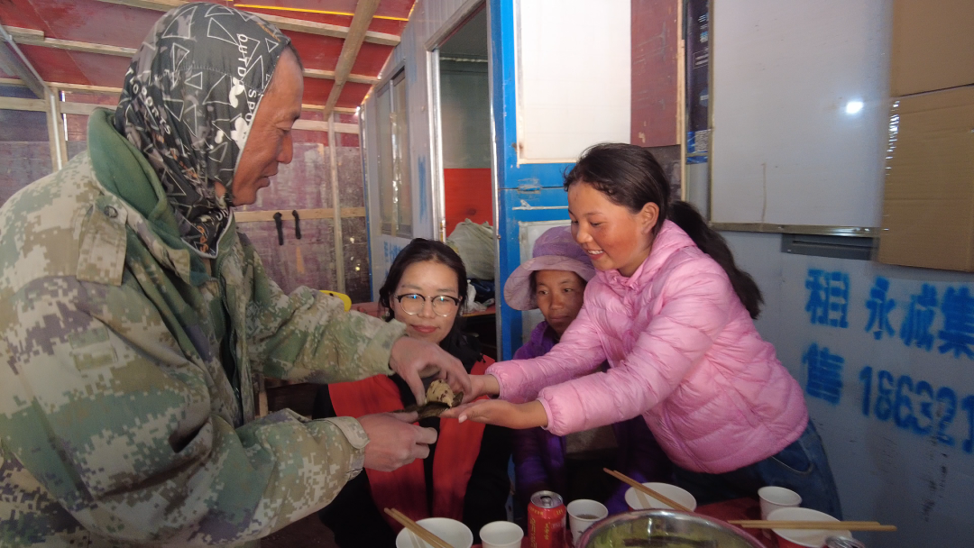 端午前夕,這份情誼化作最美的畫面。5月29日,康孔村飄著酥油香與粽葉青。村民準備了酥油茶、水果,施工隊也擺上四菜一湯和粽子。大家圍坐在一起,你給我倒酥油茶,我給你遞粽子,歡聲笑語不斷。