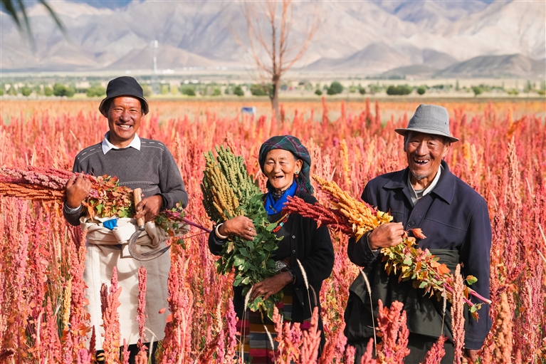 上海市援藏重點項目——薩迦縣高原藜麥種植農戶喜獲藜麥豐收。