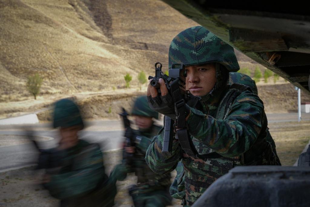 達(dá)娃卓嘎(右一)和戰(zhàn)友進(jìn)行戰(zhàn)術(shù)訓(xùn)練