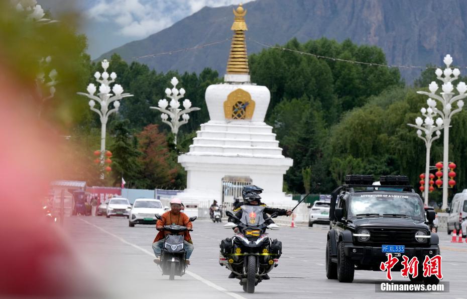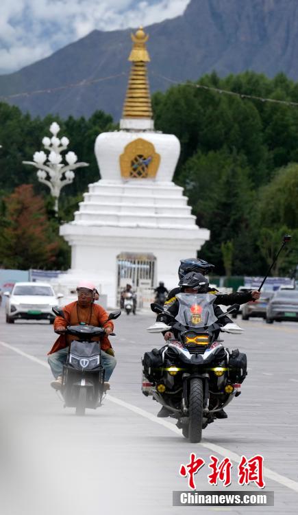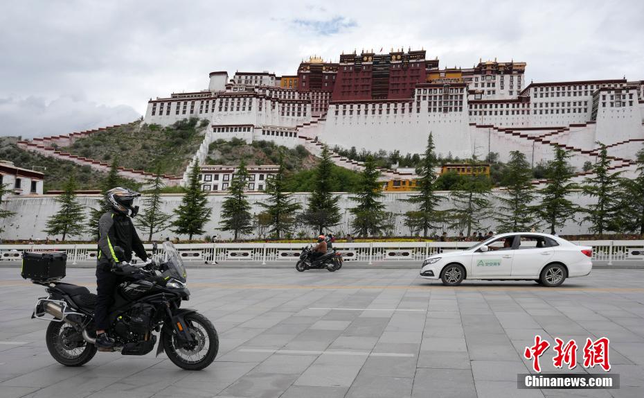 7月3日,摩旅愛好者行駛在拉薩街頭。隨著暑期旅游旺季的到來(lái),進(jìn)藏自駕游成為旅行愛好者的熱門選擇。房車愛好者、摩旅愛好者選擇自駕抵達(dá)拉薩,專程途經(jīng)布達(dá)拉宮打卡。中新社記者 李林 攝