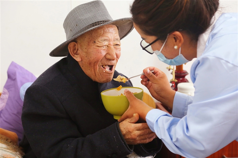 陽光穿過明凈的玻璃窗,溫柔地灑在80歲失明老人拉巴次仁手中的木碗上。他捧著熱騰騰的飯菜,幸福的笑容在臉上肆意綻放:“在這里,一日三餐有人端到跟前,臟衣服剛換下就有人洗凈送回,生病也不愁沒人管。”老人言語間滿是對生活的感激。