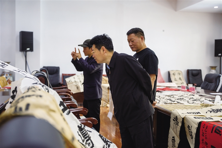 下午的漢文書法評選同樣精彩。兩百多幅參選作品,涵蓋楷書、行書、隸書、草書、篆書五種字體,風(fēng)格多樣,展現(xiàn)出扎實的書法功底和深厚的文化底蘊。中國書協(xié)會員、西藏書協(xié)理事田中鶴認(rèn)真地審閱著每一幅作品,他感慨道:“活動自啟動便獲全國書法愛好者廣泛關(guān)注,參賽作品不僅數(shù)量可觀,質(zhì)量更值得肯定。”其中,一等獎的楷書作品工整端莊,緊扣“民族團結(jié)”主題,既彰顯書法藝術(shù)魅力,又傳遞出“高原紅石榴”象征的團結(jié)奮進精神,給評審團留下深刻印象。