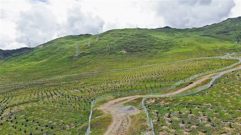 “歡迎來(lái)到南北山綠化工程現(xiàn)場(chǎng)!”指揮部工作人員頓珠迎面走來(lái),熱情洋溢地說(shuō)。他翻開(kāi)隨身攜帶的工作日志,密密麻麻的記錄映入眼簾:“截至目前,我們已栽植161萬(wàn)余株苗木,種植穴和網(wǎng)圍欄等基礎(chǔ)工程全部完工?!表樦闹敢ィy灰色的網(wǎng)圍欄在晨光中閃爍,如鋼鐵長(zhǎng)城般蜿蜒于群山。
