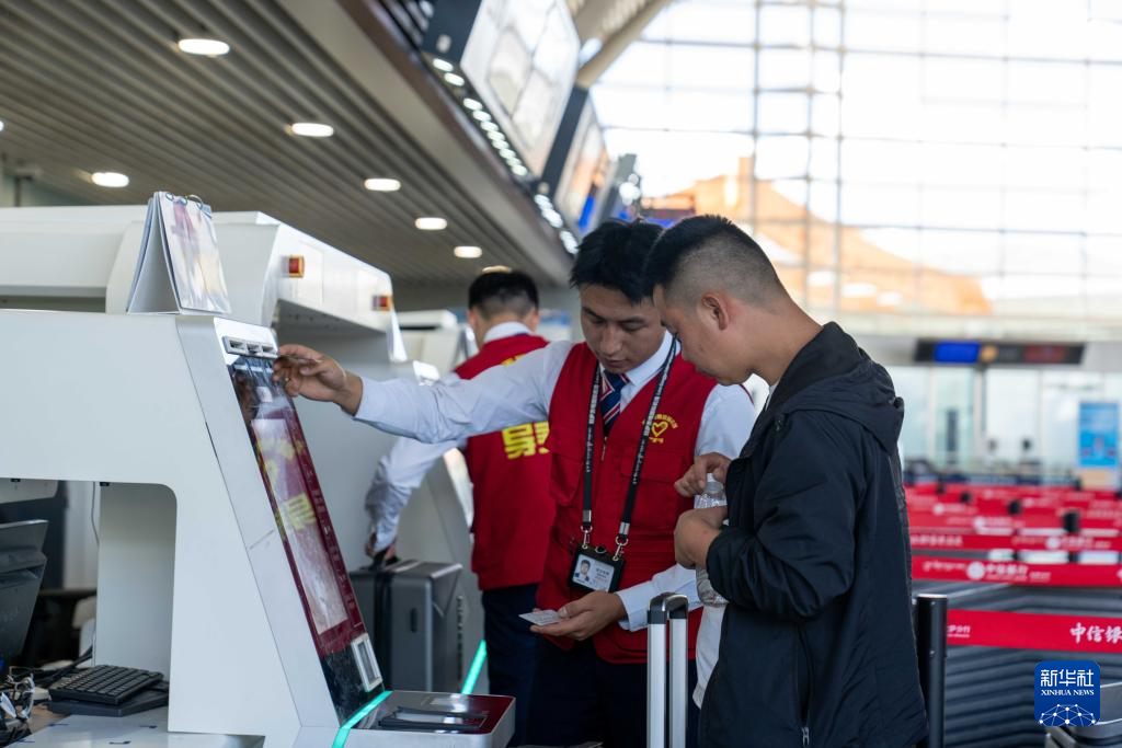 7月18日,旅客在拉薩貢嘎國際機場自助值機。新華社記者 旦增尼瑪曲珠 攝?