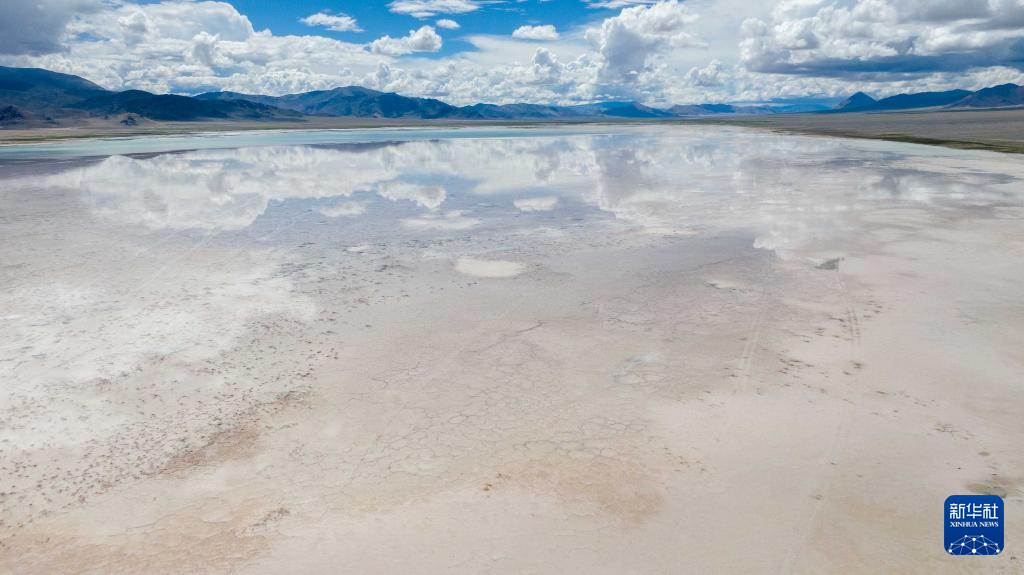 7月20日拍攝的位于西藏阿里地區(qū)革吉縣的鹽湖一景(無(wú)人機(jī)照片)。新華社記者 旦增尼瑪曲珠 攝