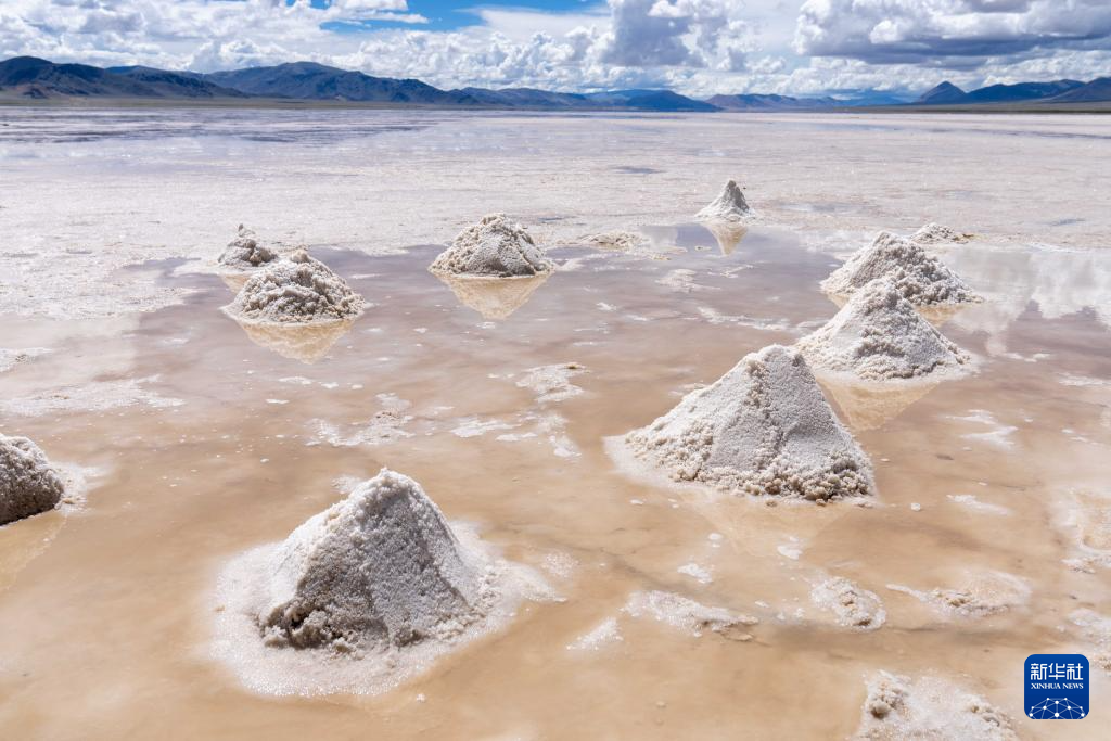 7月20日拍攝的革吉縣牧民堆積的鹽。新華社記者 旦增尼瑪曲珠 攝
