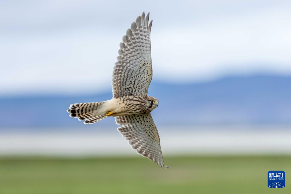 7月22日拍攝的瑪旁雍錯(cuò)濕地上棲息的國家二級保護(hù)野生動物紅隼。新華社記者 旦增尼瑪曲珠 攝