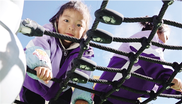 那曲市色尼區(qū)第五幼兒園的學生正在玩耍。 圖由吳小聰提供