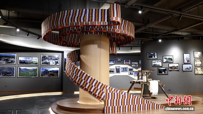 作為扎囊縣“氆氌之鄉(xiāng)”的靈魂技藝,這里陳列著傳統(tǒng)織布機(jī)、多彩氆氌的實(shí)物,旋轉(zhuǎn)式柱子上展示的氆氌成品更是令人驚嘆:既延續(xù)著千年羊毛紡織的溫暖質(zhì)感,又透著當(dāng)代匠人對(duì)傳統(tǒng)技藝的新鮮詮釋,展示扎囊人民代代相傳的智慧與對(duì)生活的熱愛。