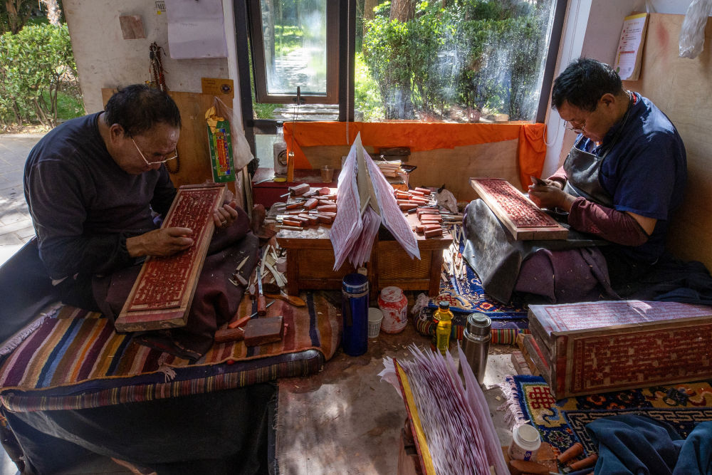 8月6日,一名雕刻師在工作中。西藏雪巴康雕版印刷制作技藝入選西藏自治區(qū)級非物質(zhì)文化遺產(chǎn)代表性項目名錄。