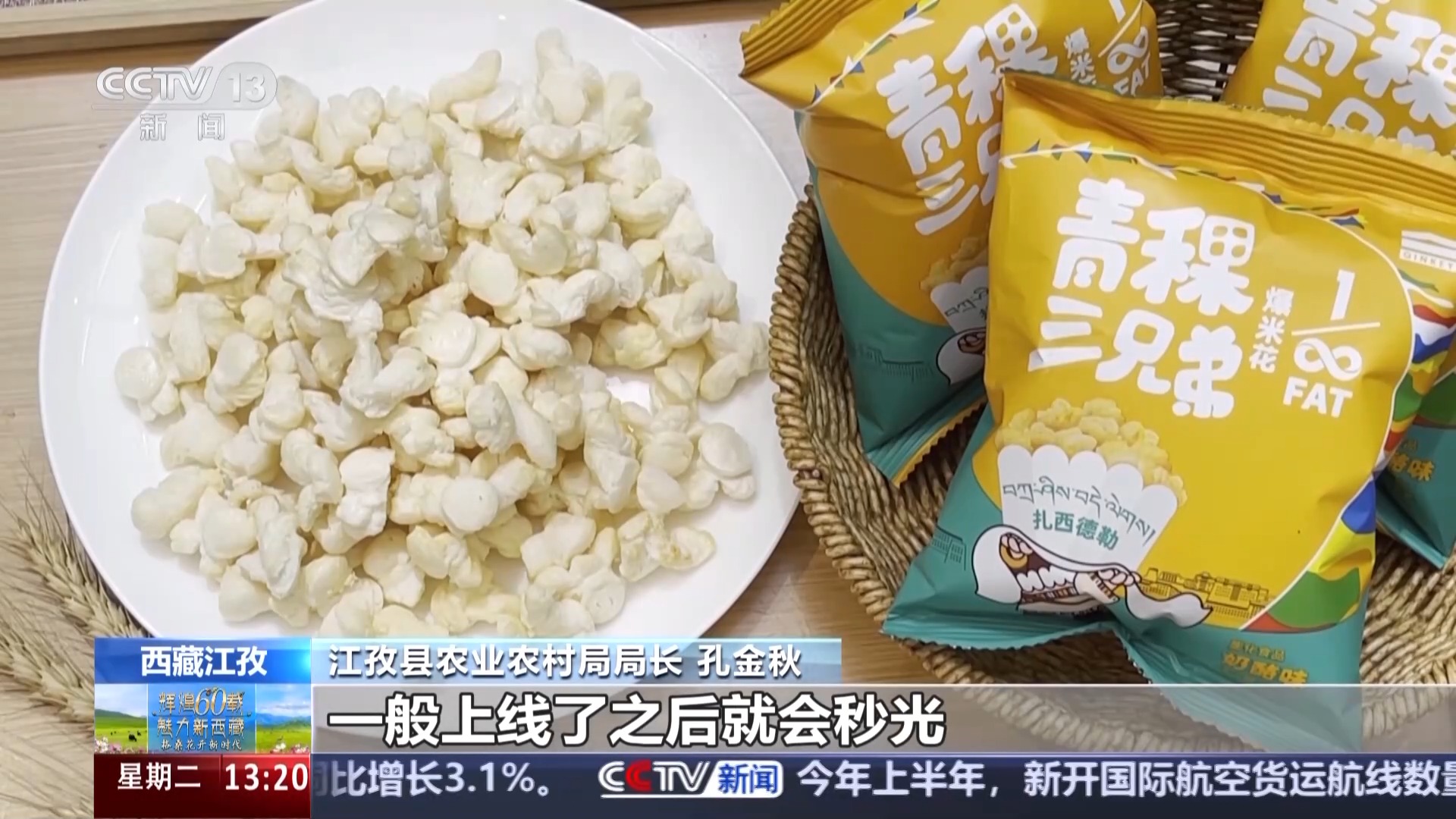 江孜縣農業(yè)農村局局長 孔金秋:像這個青稞爆米花,麻森這些產品在線上都非常受歡迎,一般上線了之后就會秒光,我們現(xiàn)在通過企業(yè)加合作社加農戶的這種發(fā)展模式,已經實現(xiàn)了青稞原料訂單7000噸,預計今年能夠實現(xiàn)1.5萬噸,青稞深加工產業(yè)的這個總產值預計突破1.7億元,同比增長21%。