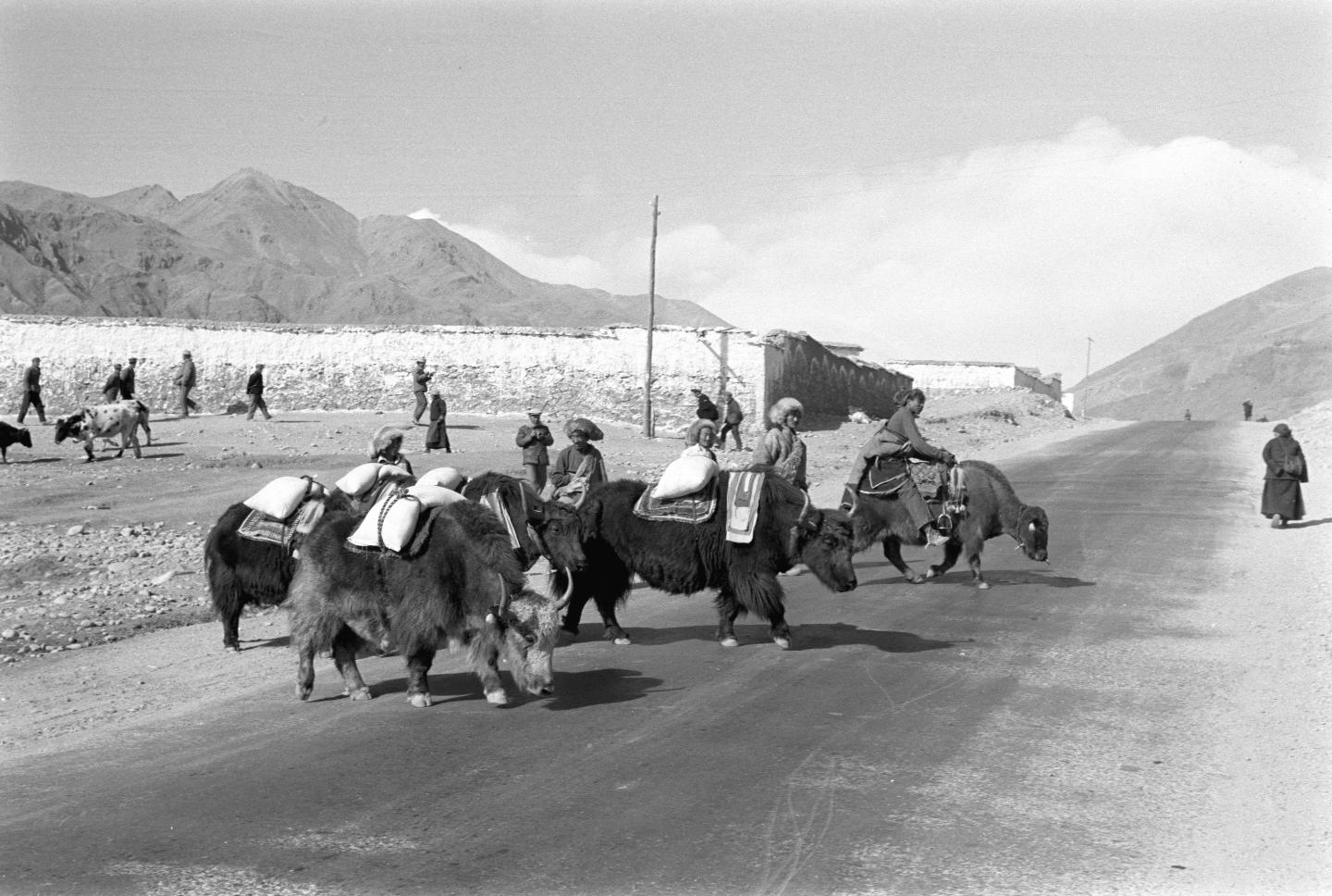 1984年1月,西藏堆龍德慶縣(現為堆龍德慶區(qū))的牧民用牦牛把飼料馱回家。新華社記者 徐澎 攝
