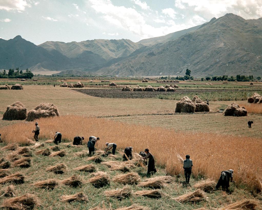 1965年8月,林芝縣(現為林芝市)立定鄉(xiāng)組織農民收割青稞。新華社記者 馬競秋 攝