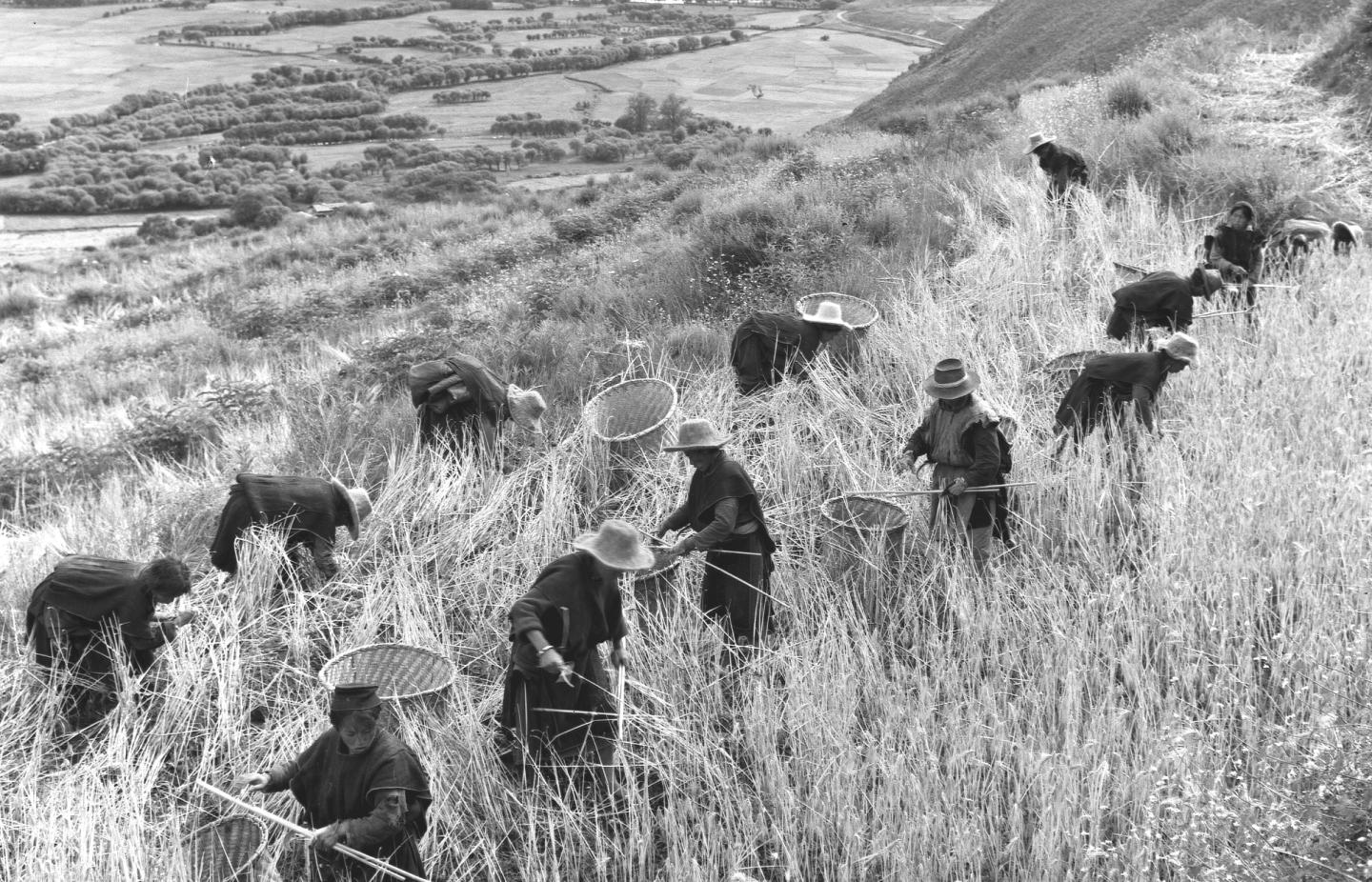 1965年,堆龍德慶縣(現為堆龍德慶區(qū))南崗鄉(xiāng)互助組組員們在收割莊稼。新華社記者 吳祖政 攝