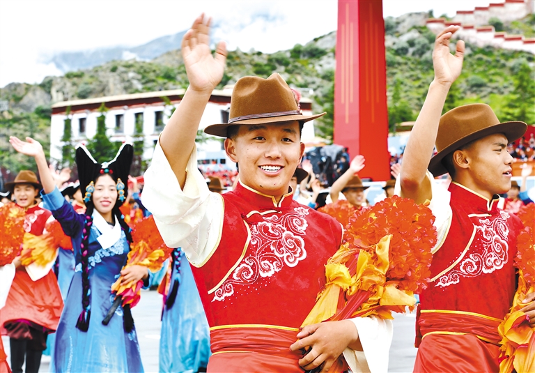 8月21日上午,西藏各族各界干部群眾約2萬人歡聚拉薩市布達(dá)拉宮廣場,熱烈慶祝西藏自治區(qū)成立60周年。