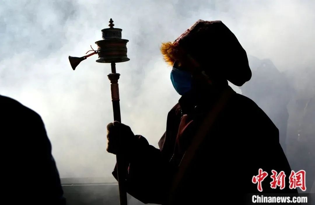 藏族同胞們既拿著轉(zhuǎn)經(jīng)筒,