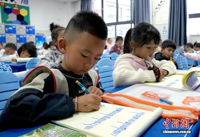 9月1日,拉薩市第一小學(xué)一年級(jí)二班的學(xué)生們?cè)诓卣Z(yǔ)文課上書(shū)寫(xiě)藏文。近日,西藏拉薩市秋季學(xué)期開(kāi)學(xué),各項(xiàng)教學(xué)工作有序開(kāi)展。中新社記者 李林 攝