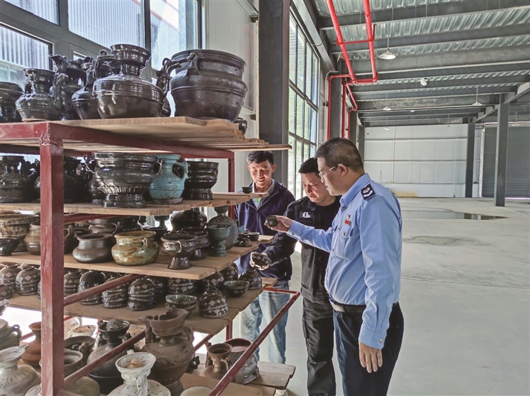 墨竹工卡縣稅務(wù)干部在西藏彌盛塔巴陶瓷工藝品傳承有限公司調(diào)研。