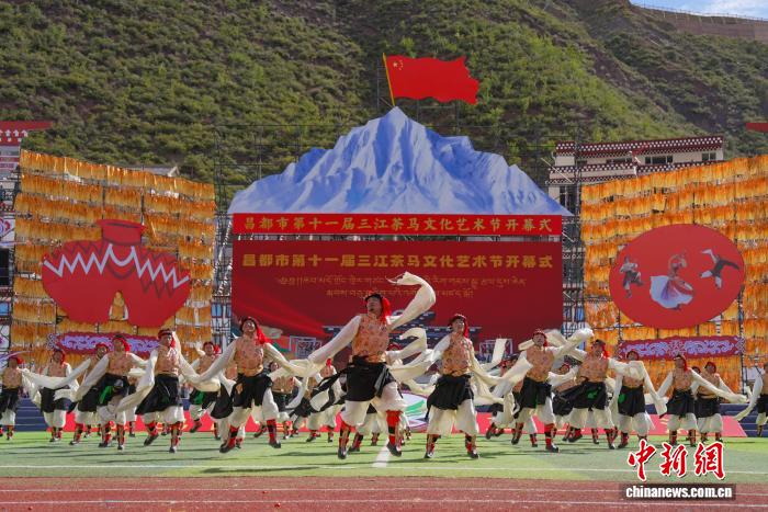 9月15日,西藏自治區(qū)昌都市第十一屆三江茶馬文化藝術(shù)節(jié)在津昌體育文化中心啟幕。開幕式以“紅色昌都 三江潮涌”為主題,由中共昌都市委員會(huì)、昌都市人民政府主辦,同步融入慶祝西藏自治區(qū)成立60周年元素,盡顯昌都文化魅力與發(fā)展活力。開幕式現(xiàn)場(chǎng),來(lái)自昌都11縣(區(qū))、身著絢麗節(jié)日盛裝的游行方陣依次登場(chǎng),各方陣通過(guò)特色展演展現(xiàn)地域文化風(fēng)采。隨后,正式文藝表演拉開帷幕,表演共分為“三江奔騰·紅色昌都”“金沙江·紅色起點(diǎn)”“怒江·指尖上的傳承”“瀾滄江·高原上的燈塔”“同心筑夢(mèng)向未來(lái)”五個(gè)篇章??蛋臀幕囆g(shù)團(tuán)、天津青年友好使者藝術(shù)
