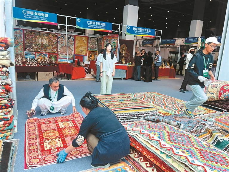 “這是我連續(xù)第三年來拉薩參加展銷。”巴基斯坦參展商Asif望著身后疊放整齊的羊毛地毯,信心滿滿地說,“往年銷量很好,今年一定能賣得更好!”
