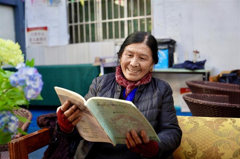 62歲的巴桑卓瑪也在課堂里找回了新的生活樂趣?!耙郧拔也蛔R字,來這兒一年多,不僅學(xué)會了讀和寫,還學(xué)到了很多新知識?!卑蜕W楷斦f,“現(xiàn)在生活好了,就想多學(xué)些新東西,每天都盼著來教室,根本不想待在家里。當初也是聽大家都說這里好,我才來的,現(xiàn)在覺得來對了!”