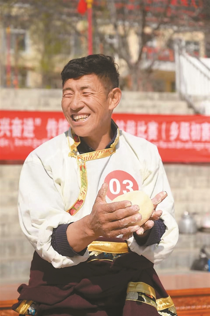 芒康縣朱巴龍鄉(xiāng)“紅色昌都 振興奮進(jìn)”活動傳統(tǒng)生產(chǎn)生活技能酥油制作比賽。記者 歐珠次仁 攝