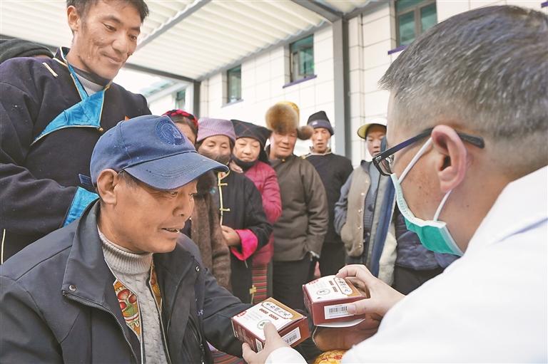 圖為湖南省第十一批援藏工作隊(duì)醫(yī)療隊(duì)的醫(yī)生在普瑪江塘邊境派出所為群眾進(jìn)行義診。