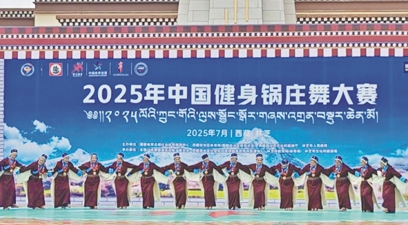 圖為2025年中國健身鍋莊舞大賽中,阿里地區(qū)象雄代表隊(duì)表演的鍋莊榮獲傳統(tǒng)鍋莊舞自編套路中年組一等獎。阿里地委宣傳部供圖